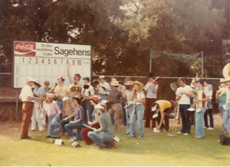 - The pep band at a Fall 1979 football game, photo by Becky Jones ’83